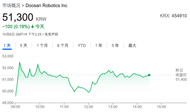 公司(Doosan Robotics Inc。)正在首尔市场上市的首日,股价便几乎翻倍。此前该公司颁布发表通过初次公开募股(IPO)募资4210亿韩元(约合3。1亿美元),截止日内收盘,收报51400韩元,盘中曾一度大涨逾160%。