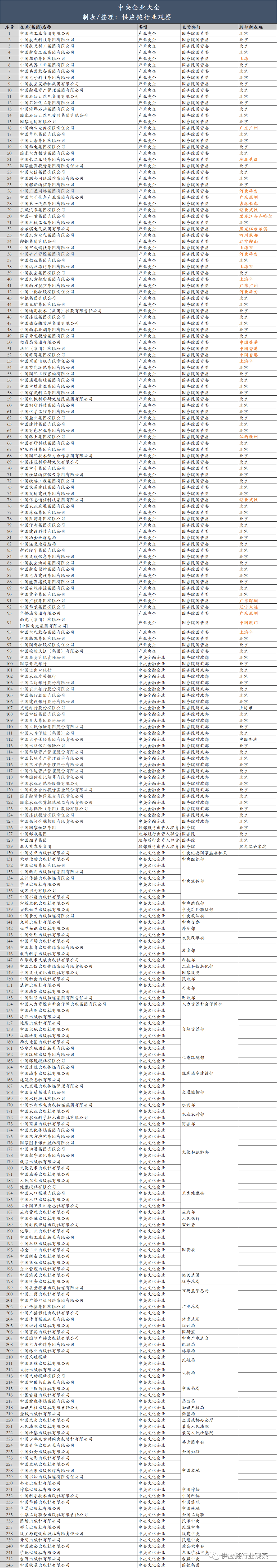 我国目前各类央企共243家,此中有列入国务院国资委央企名录的央企98家、列入财务部地方企业名录的央企145家。这些央企和国企正在2022年的停业收入是82。6万亿,净利润是4。32万亿,上缴税收5。93万亿。约有员工3390万。4月3日,易华录发布通知布告暗示公司收到现实节制人中国华录集团无限公司(以下简称华录集团)通知,华录集团正正在取中国电子科技集团无限公司(以下简称中国电科)规画沉组事项,华录集团拟整合进入中国电科。华录集团取中国电子科技集团整合后,国务院国资委监管的地方企业数量或将由现正在的98家削减为97家。排名1-53的为副部级央企。前53家地方企业的董事长、党委(党组)、总司理的人选由地方局常委会研究决定,这取一般副部长级干部的任免权限不异,因而被认为相当于副部级干部。所以,前53户正在报道中被称为中管企业,可是正在地方发文中,一般称为部门国有主要企业。除前53家央企,其余央企的代表人(大都是董事长)须报国务院党组任前存案同意。其监管由国务院国资委企业带领人员办理二局(简称“企干二局”)担任。前1-10为涉军工央企,别离为:中国核工业集团、中国航天科技集团、中国航天科工集团、中国航空工业集团、中国刀兵工业集团、中国刀兵配备集团、中国电子科技集团、中国航空策动机集团、中国融通资产办理集团。第11-22为能源类央企,此中11-14为石油类央企,别离为中石油、中石化、中海油及国度石油天然气管网集团;15-22为两大电网(南方电网、国度电网)及六大发电集团(华能、大唐、华电、国电投、三峡和国度能源集团);23-27为通信及电子消息央企,别离为:中国电信、中国联通、中国挪动、中国卫星收集集团、中国电子消息财产集团;28-33为配备制制类央企,别离为:中国一汽、春风汽车、中国一沉集团、中国机械工业集团、电气集团、中国东方电气集团;34-37为矿产资产类央企,别离为:鞍钢、中国宝武、中国矿产资本集团、中国铝业集团;38-41为交通运输行业央企,中国近海海运集团、中国航空集团、中国东方航空和中国南方航空集团。42-43为涉农类央企,包罗中国中化和中粮。此外,包罗中国五矿集团、通用手艺集团、中建集团、中国储蓄粮集团、中国南水北集结团、国投集团、招商局集团、华润集团、中国旅逛集团、中国商飞集团分属分歧业业。此外,正在这98家央企中,国务院国资委核准的以金融为从业的央企共3家,包罗中国五矿集团等。以房地产为从业的央企共16家。地方金融企业名录由财务部发布,目前共27家。地方金融企业共分地方办理带领人员的金融企业(以下简称中管金融企业)和其他地方金融企业。其他地方金融企业则为施行国有金融本钱办理相关轨制,由财务部代表国务院履行国有金融本钱出资人职责,纳入国有企业运营预算办理、担任组织实施年度绩效评价等工做。此中中管地方金融企业15家,别离为中国投资无限义务公司、三大政策性银行(国度开辟银行、中国进出口银行、中国农业成长银行)、五大国有贸易银行(工行、农行、中国银行、扶植银行、两大金控央企(中信集团、光大集团)及四大安全集团(中国人保、中国人寿、承平安全、中国出口信用安全集团)。其他地方金融企业12家,别离为四大资产办理公司(华融、长城、信达、东方)、中债登、中国农业再安全、中国政企合做投资基金股份无限公司、国度融资基金无限义务公司、国度农业信贷联盟无限义务公司、中国再安全(集团)股份无限公司、中国建银投资无限义务公司及中国银河金融控股无限义务公司。由国务院授权财务部履行出资人职责的企业共4家,别离为中国国度铁集团、中国邮政集团、中国烟草总公司、北大荒农垦集团无限公司。